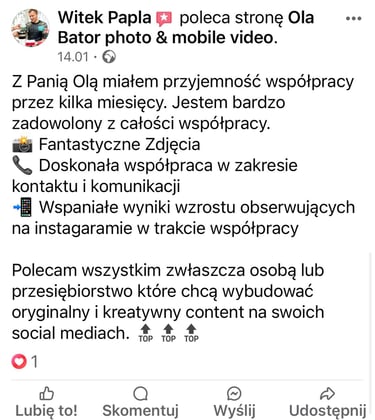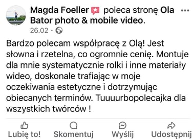 Nagrywam wideo, fotografuje i tworzę szeroko pojęte treści, na media społecznościowe.